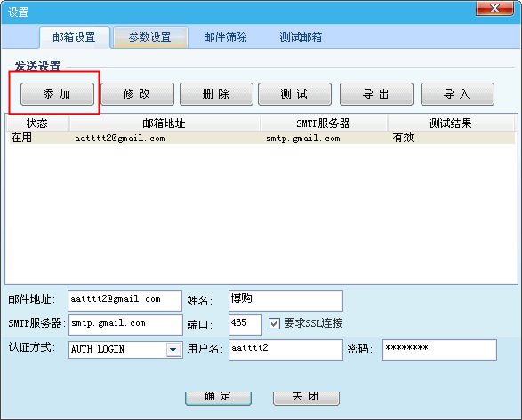 2.如下图,点击[添加],即可设置发送邮箱。