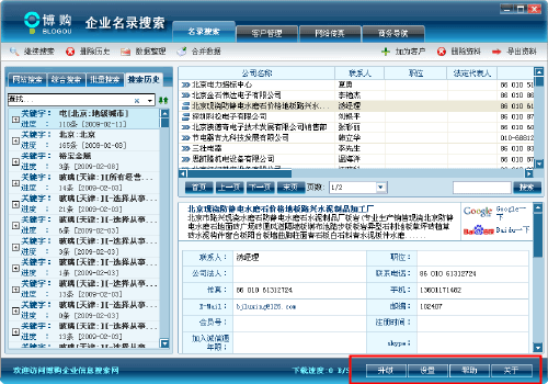 登录博购企业信息搜索商务版后,点击软件右下角【设置】按钮,即可看到设置界面,