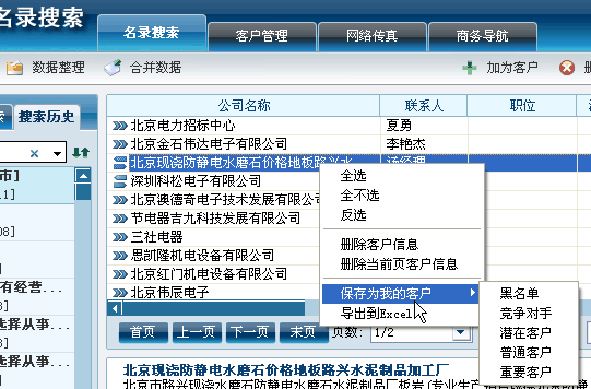 博购提供了简单实用的客户管理功能,可以将搜索的客户信息,导入到客户管理中。