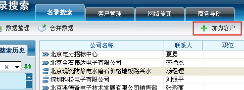 在【搜索历史】中,选择客户信息,点击右键菜单,即可将选择的客户添加到客户管理中