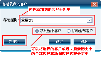 您可以通过如下的设置界面,将客户信息添加对对应的分组中